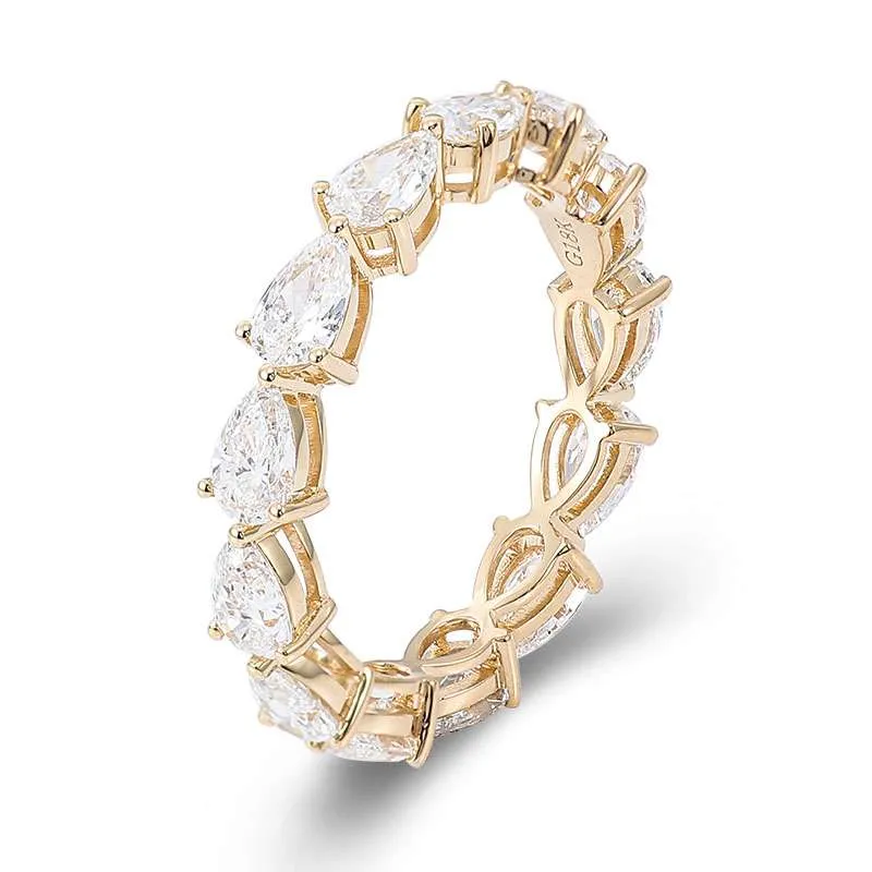 Exquisite Pear Cut Brilliance:Stunning Yellow Gold 5.2CTW Moissanite Eternity Ring