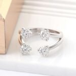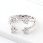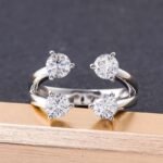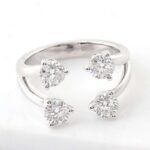 This eye – catching white gold Open Style Ring features a unique open style design, adorned with four brilliant round cut moissanite stones of VVS clarity. Each stone sparkles radiantly, reflecting light from every angle. The sleek white gold band complements the moissanites perfectly, creating a harmonious blend of modern and elegant styles. Ideal for making a statement or adding a touch of luxury to any outfit, it’s a must have piece for jewelry enthusiasts.