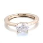 Indulge in the world of luxury with this magnificent yellow gold Moissanite Ring. At its heart lies an oval cut VVS moissanite, radiating a brilliant and captivating sparkle. The smooth yellow gold band perfectly complements the oval cut moissanite, enhancing its elegance. This classic and sophisticated design makes it an ideal choice for engagements, anniversaries, or any special occasion. It’s a symbol of everlasting love and exquisite craftsmanship.