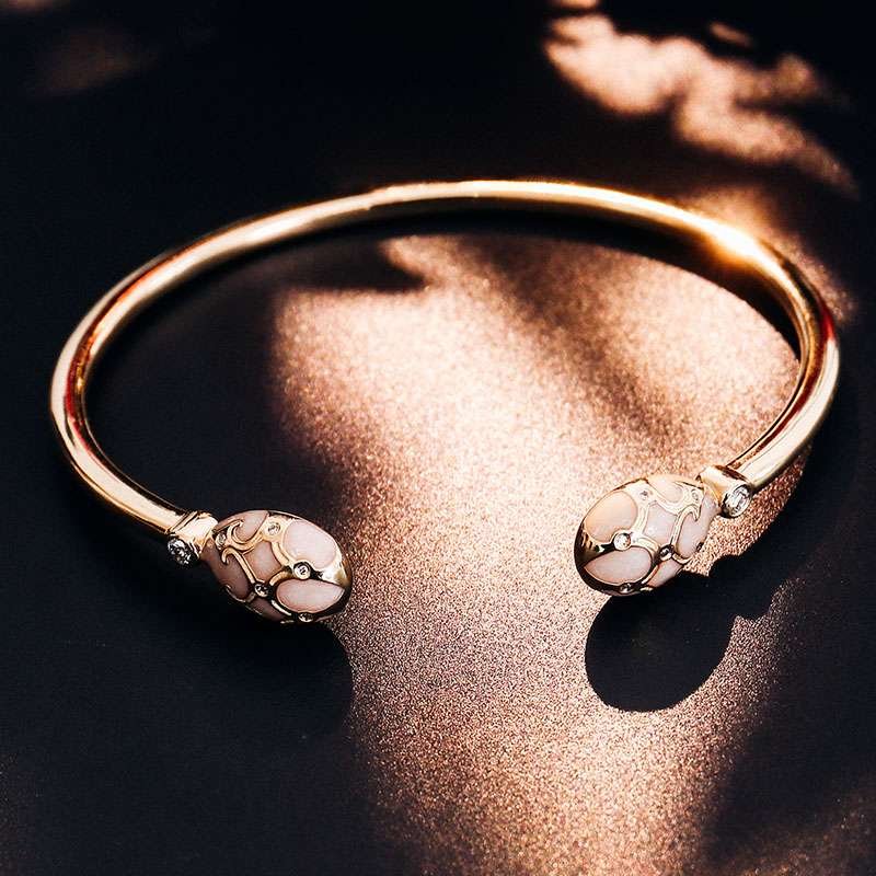 Fabergé Inspired Gold Moissanite Bracelet with Guilloché Enamel Eggs