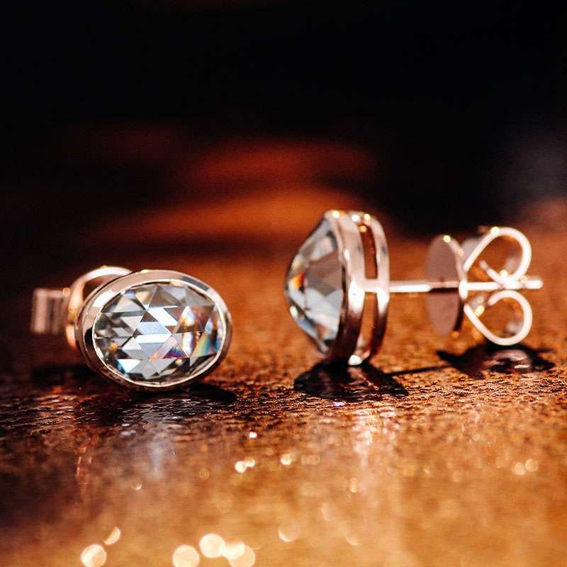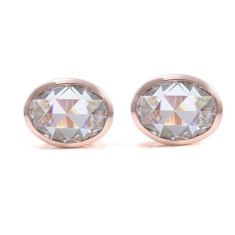 These Oval Cut Stud Earrings are embellished with VVS clarity oval cut moissanite stones, beautifully set in rose gold. The soft and romantic hue of the rose gold perfectly complements the brilliant sparkle of the moissanite, creating a pair of earrings that are both elegant and stylish. Whether for a special occasion or daily wear, they are sure to add a touch of glamour to your look.