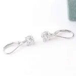 These Moissanite Drop Earrings are crafted from white gold, exuding a sleek and elegant charm. Each earring showcases a round cut moissanite of VVS clarity, which sparkles with a captivating brilliance. The graceful drop design, combined with the high quality moissanite and white gold, makes these earrings a perfect accessory for any occasion. Whether it’s a casual outing or a formal event, they are sure to add a touch of sophistication to your look.