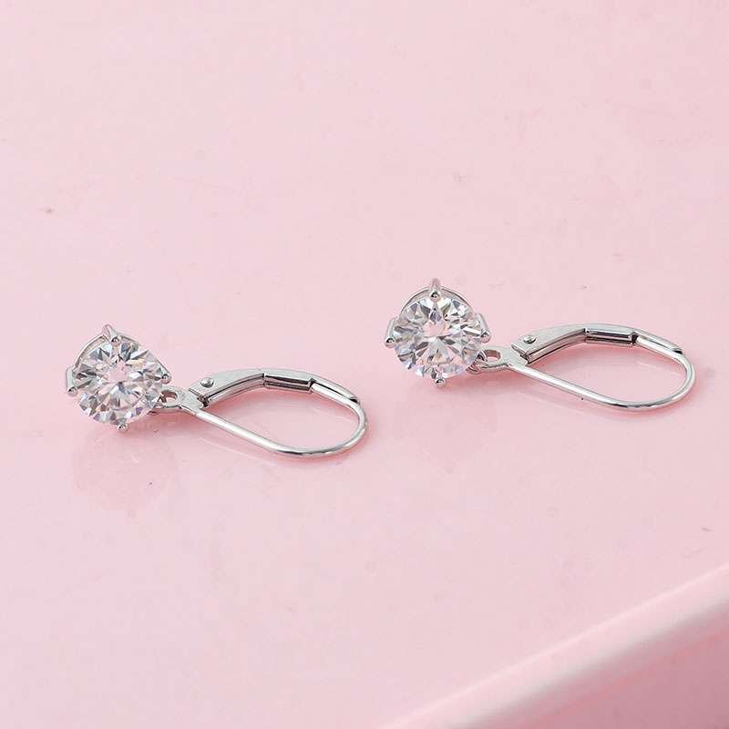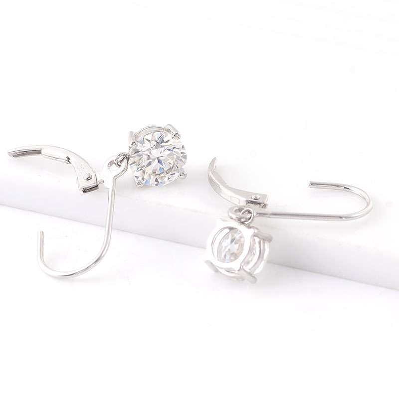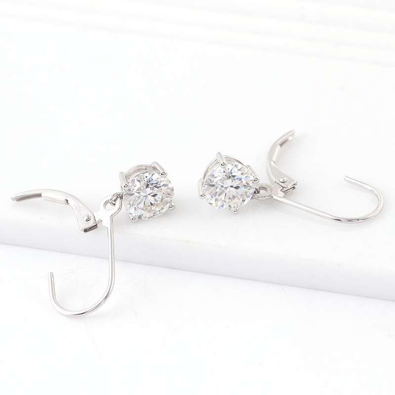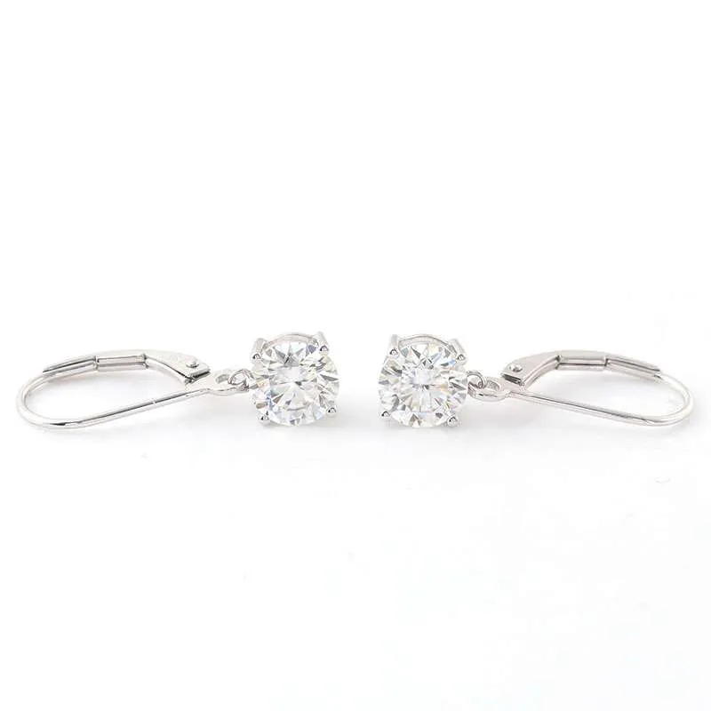 Fabulous White Gold Round Cut Moissanite Drop Earrings