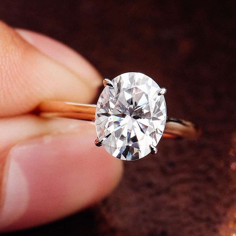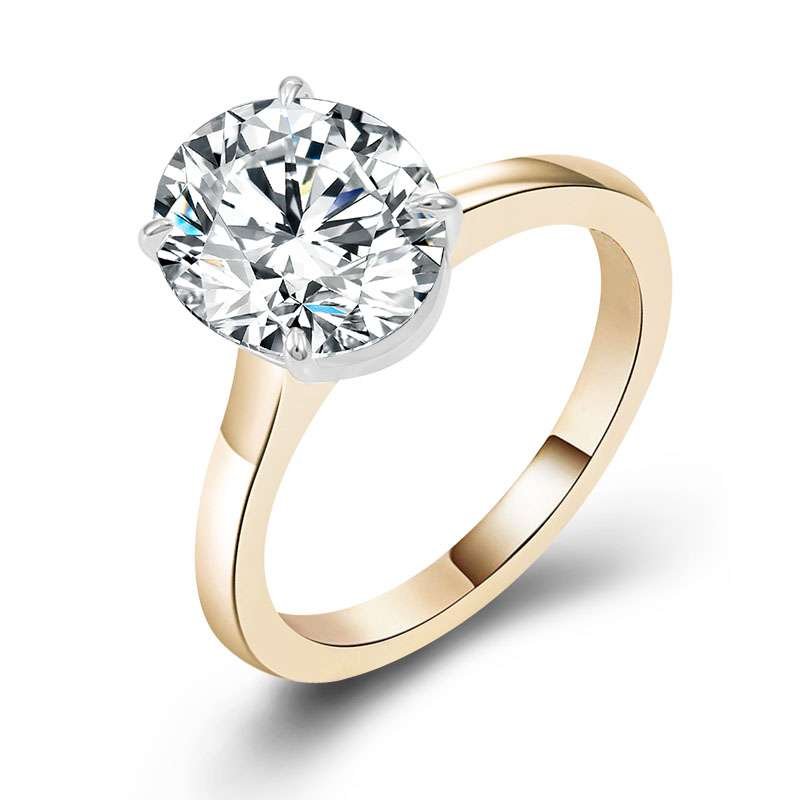 Fabulous Yellow Gold 3CT Oval Cut Moissanite Solitaire Ring