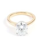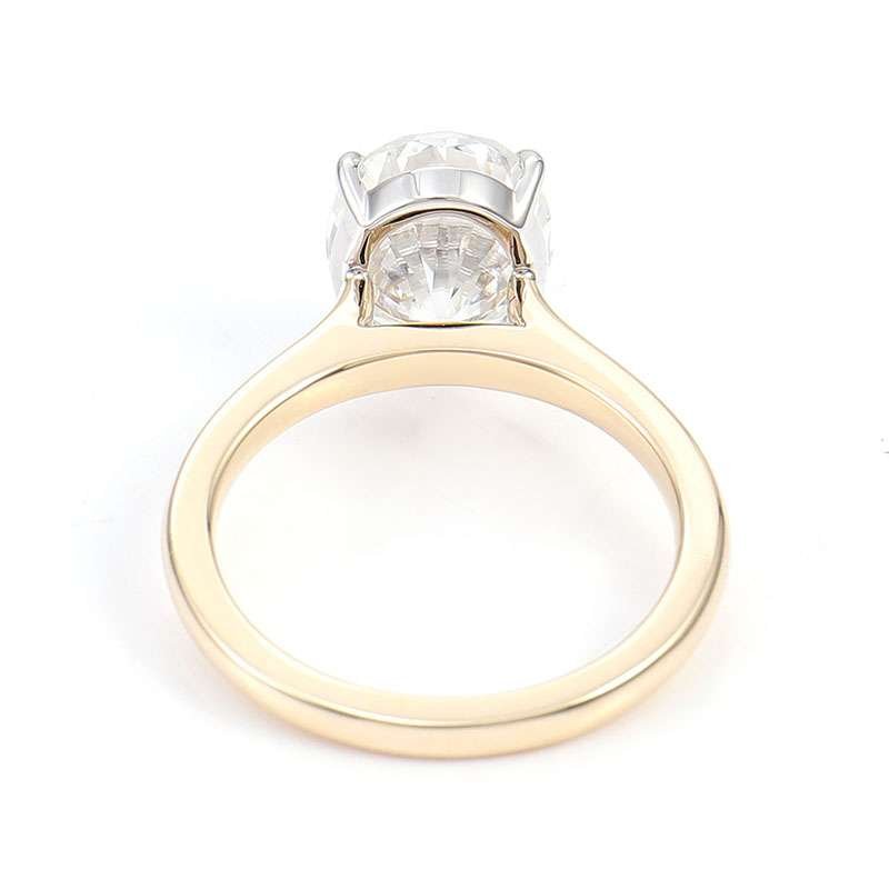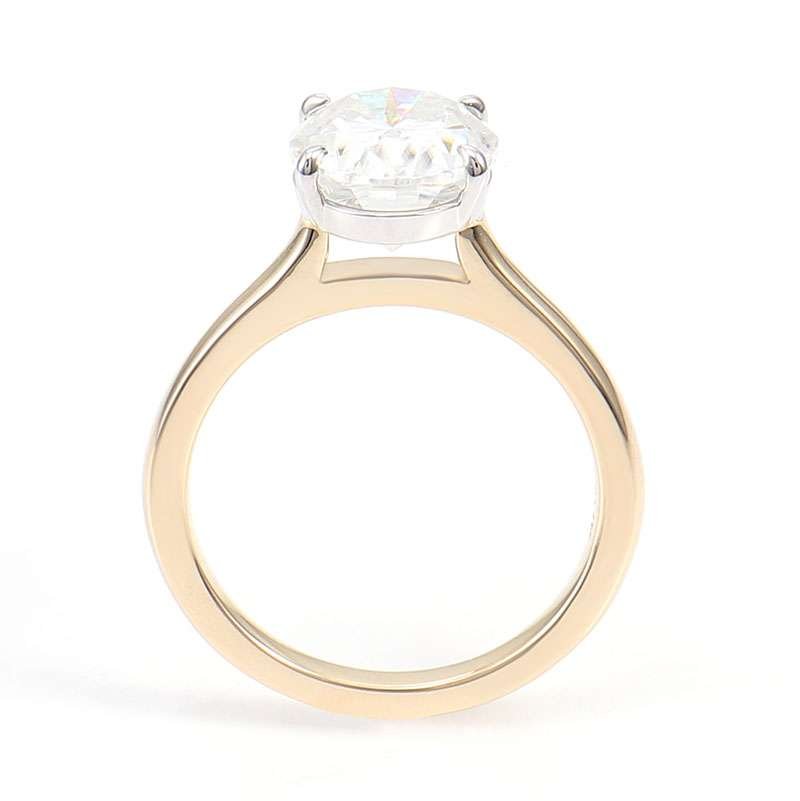 This Moissanite Solitaire Ring is crafted from yellow gold. The center oval cut moissanite with VVS clarity radiates a breathtaking sparkle. Its simple yet elegant design makes it a versatile piece, perfect for both daily wear and special occasions.