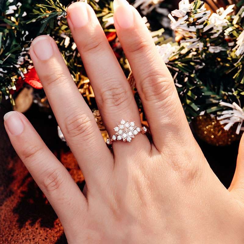 Flower Design:Gorgeous Rose Gold Round Cut Moissanite Ring