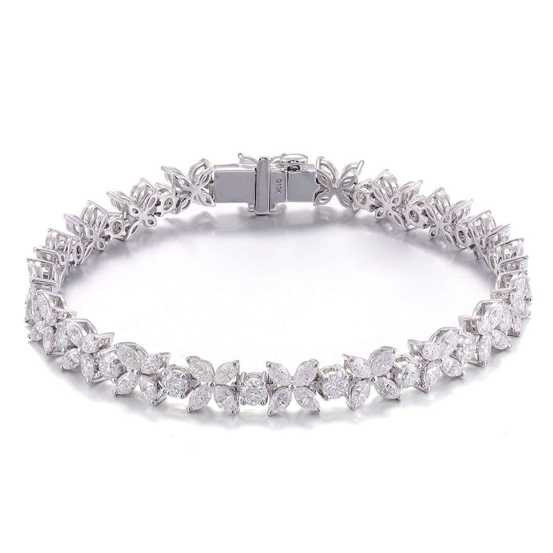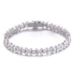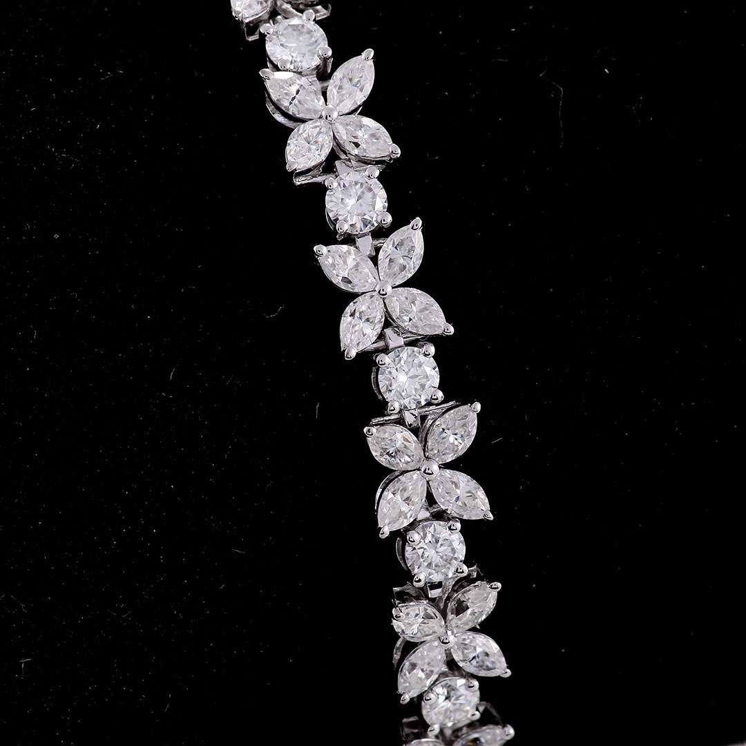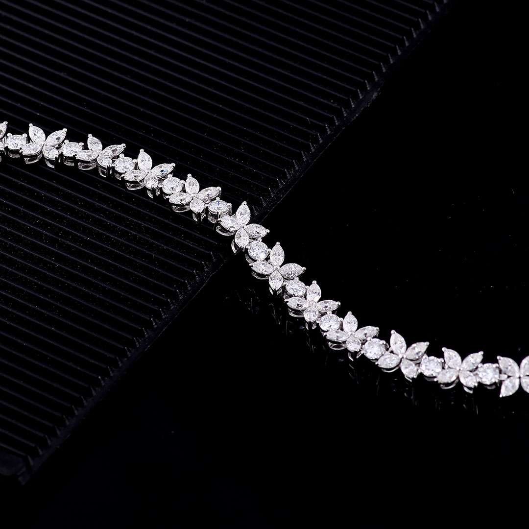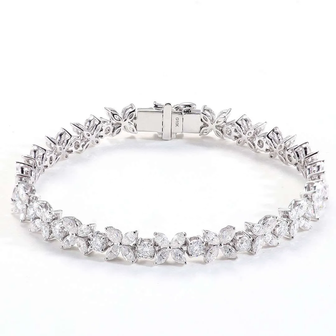 Embrace the magic of a blooming garden with this captivating four-petal flower moissanite tennis bracelet. Imagine a chain of cascading light, where exquisite marquise-cut moissanites gracefully curve into mesmerizing petals, forming two enchanting floral clusters strung together. This isn’t just a bracelet, it’s a radiant celebration of interconnected charm and blossoming beauty.
