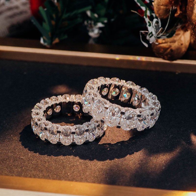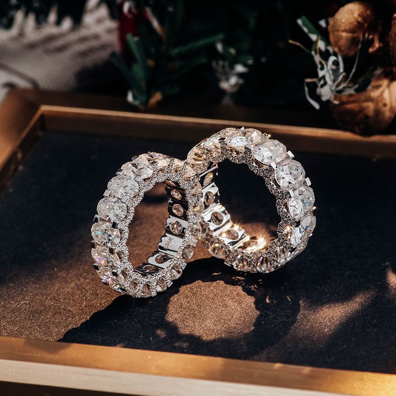 Celebrate your special moments with fine jewelry that captures the essence of elegance and love. Our Eternity Rings, crafted with Oval-cut Moissanite and diamonds in 14K and 18K yellow gold, are the perfect symbols of your commitment and timeless beauty.
