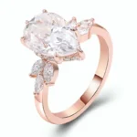 Immerse yourself in the captivating beauty of this rose gold Pear Cut Ring, featuring a VVS clarity moissanite stone in a stunning pear cut. The main stone is flanked by smaller moissanite accents, all set in luxurious rose gold. The combination of the warm rose gold and the brilliant moissanite creates a ring that exudes glamour and chicness. Perfect for making a statement, it’s an ideal choice for special occasions or as a luxurious everyday piece.