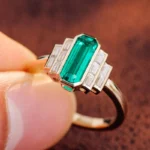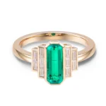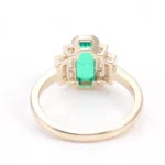 Discover the allure of our exquisite yellow gold Lab Gemstone Ring a testament to refined craftsmanship and timeless style. At its core is a striking, emerald cut lab created Zambia gemstone, boasting a lush, vibrant green hue that exudes opulence. Flanking the central gem are shimmering moissanite stones, meticulously set to enhance the brilliance of the Zambia gem and create a captivating display of light. The warm, lustrous yellow gold band adds a touch of classic elegance, making this ring a perfect blend of modern design and traditional charm. Ideal for both special occasions and everyday wear, it’s a statement piece that will surely draw compliments and admiration.