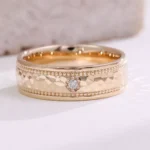 Golden Hour Solitaire Ring | Warm-Tone Hammered Ring with Round-Cut Moissanite & Beaded Accents