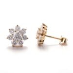 Gorgeous Vintage Style Yellow Gold Moissanite Flower Stud Earrings