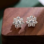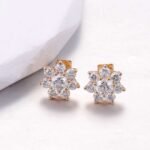 Enhance your jewelry wardrobe with these remarkable yellow gold Stud Earrings. Adorned with VVS clarity round cut moissanite stones in a lovely flower shape, they combine vintage charm and contemporary grace. Ideal for infusing every look with everlasting beauty.