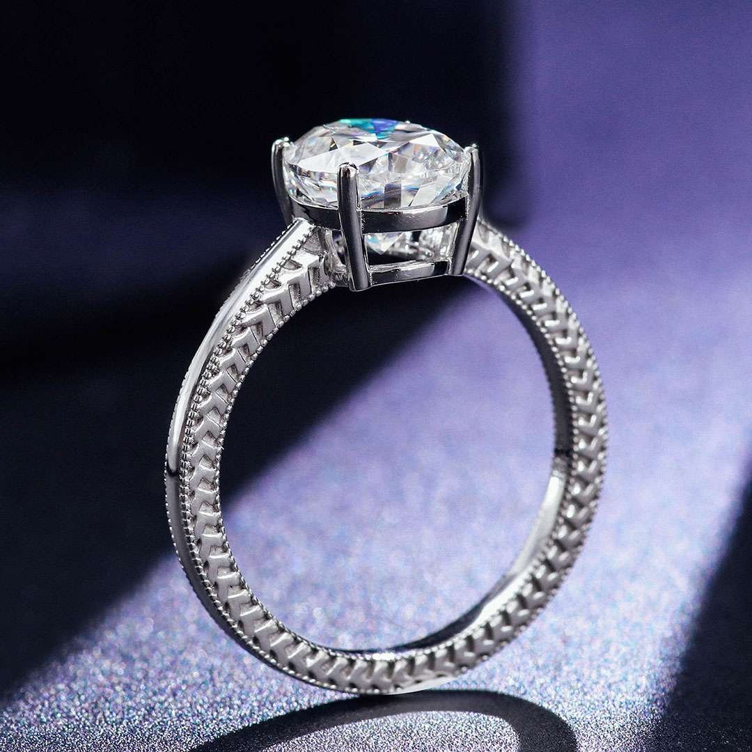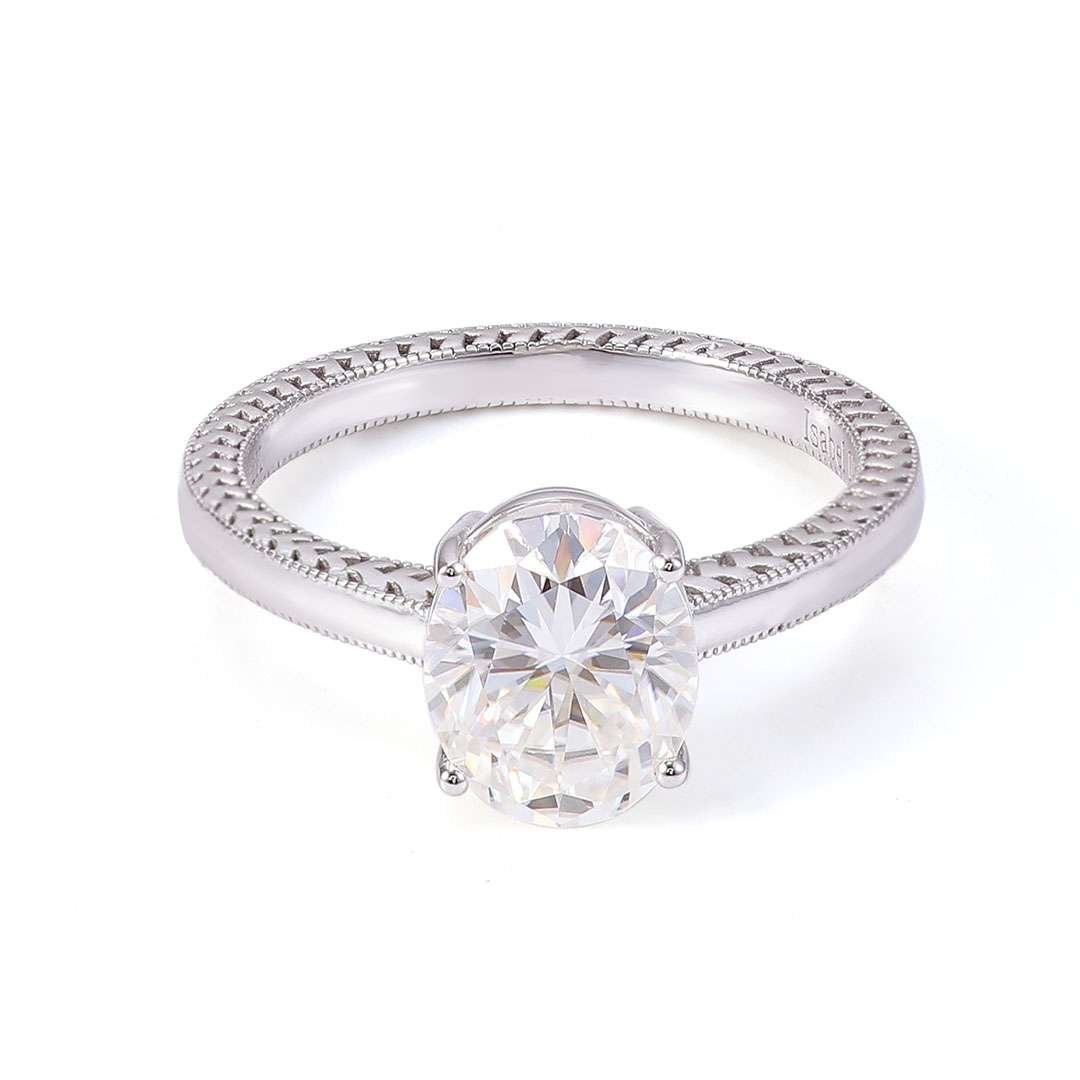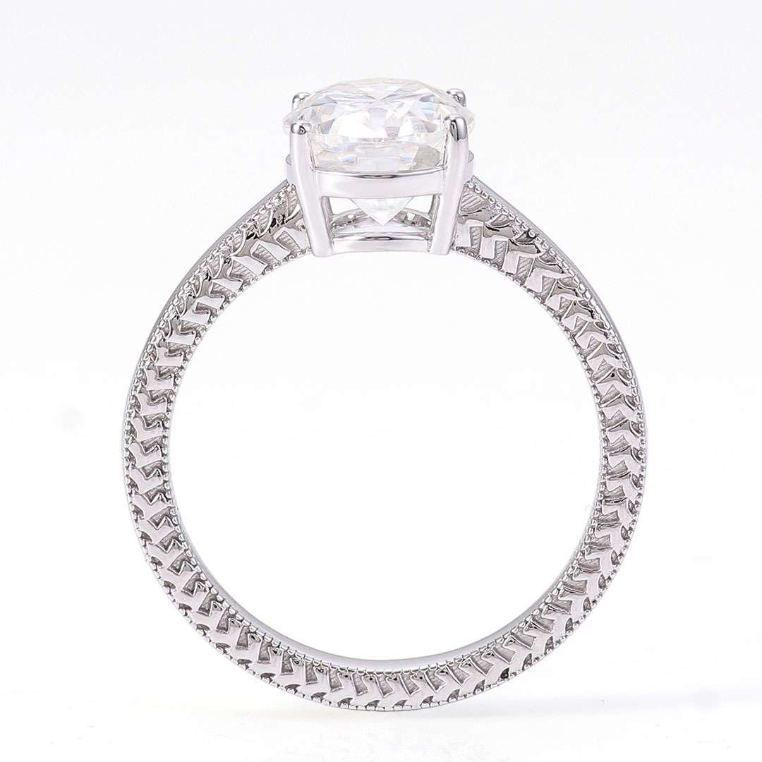 Step into timeless elegance with this exquisite white gold Moissanite Ring. It features an oval cut moissanite of VVS clarity, radiating brilliant sparkle. The intricately engraved white gold band adds a vintage charm, making it a perfect blend of classic and contemporary. Ideal for engagements, anniversaries, or as a standout piece in your jewelry collection, this ring promises to captivate with its beauty.