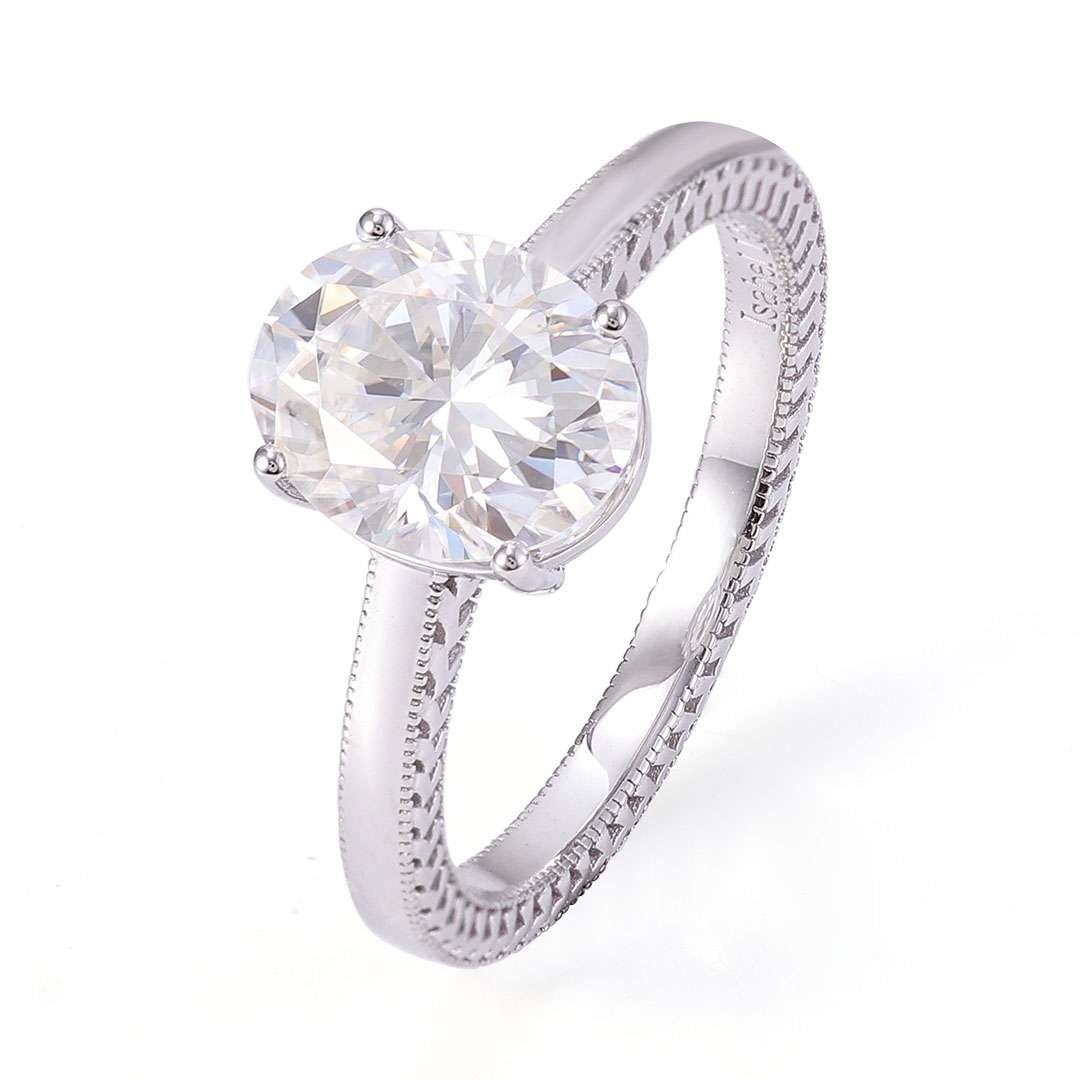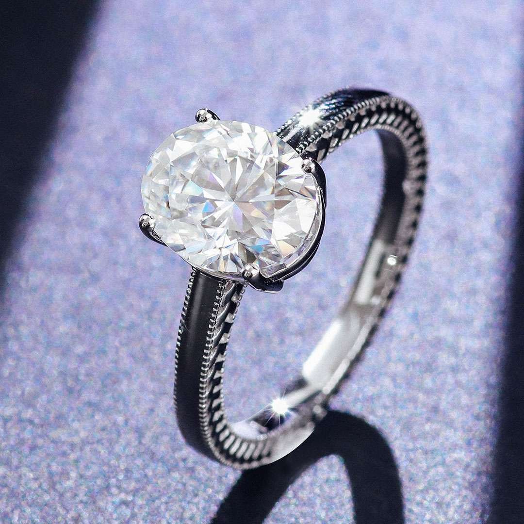 Gorgeous White Gold 3CT Oval Cut Moissanite Ring