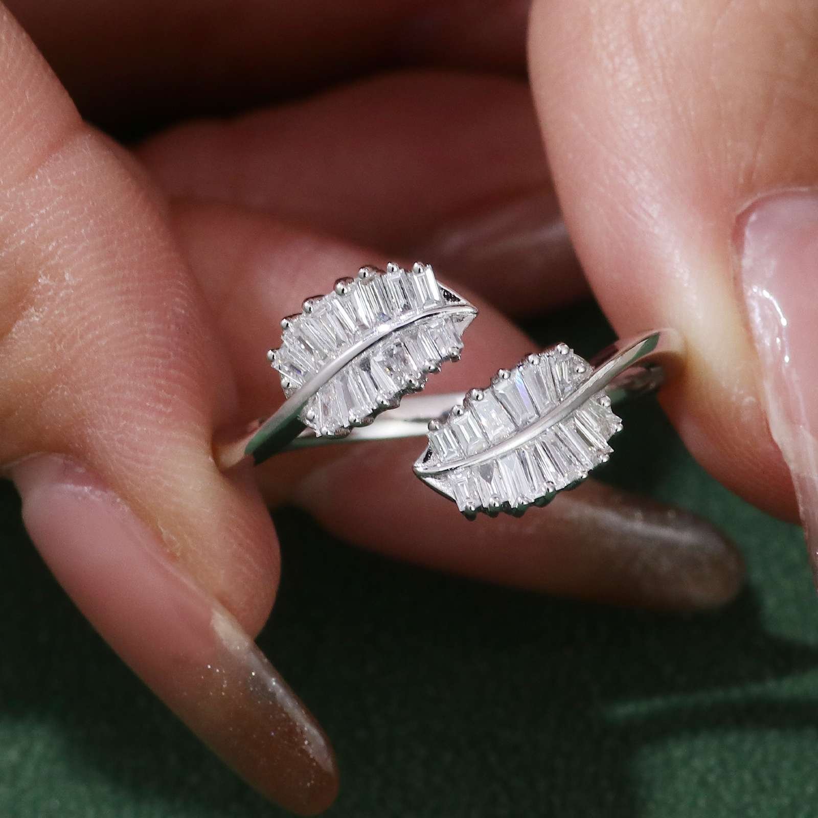 Enhance your jewelry collection with our Gorgeous White Gold Moissanite Open Ring. Meticulously crafted from premium white gold, this ring radiates modern sophistication. The VVS clarity moissanite stones are expertly set, capturing and reflecting light to create a brilliant sparkle. Its open ring design offers a contemporary flair, making it suitable for both casual and formal occasions. Whether worn solo or paired with other pieces, this ring is a statement of elegance and style, a must – have for those with a discerning taste.