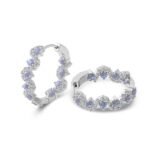Gorgeous White Gold Round Cut Blue Lab Gemstone Hoop Earrings