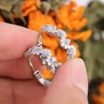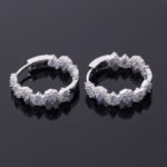 Indulge in the allure of our Gorgeous White Gold Round Cut Lab Gemstone and Moissanite Hoop Earrings. Meticulously crafted from premium white gold, these earrings showcase a sleek and timeless hoop design. The round cut lab gemstones and moissanite are artfully encrusted along the hoop, radiating a brilliant sparkle that catches every eye. Their lightweight construction ensures comfortable all day wear, while the secure clasp guarantees they stay in place. Perfect for elevating any outfit, from casual ensembles to formal attire, these hoop earrings are a must have addition to your jewelry collection.