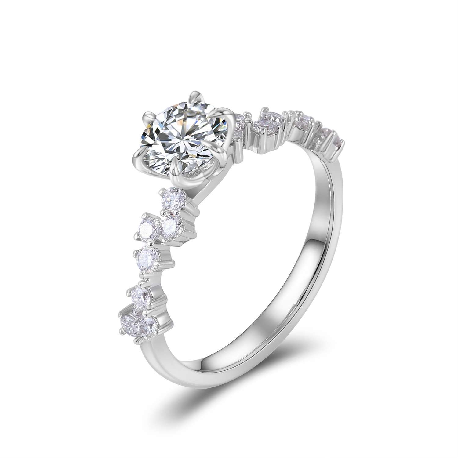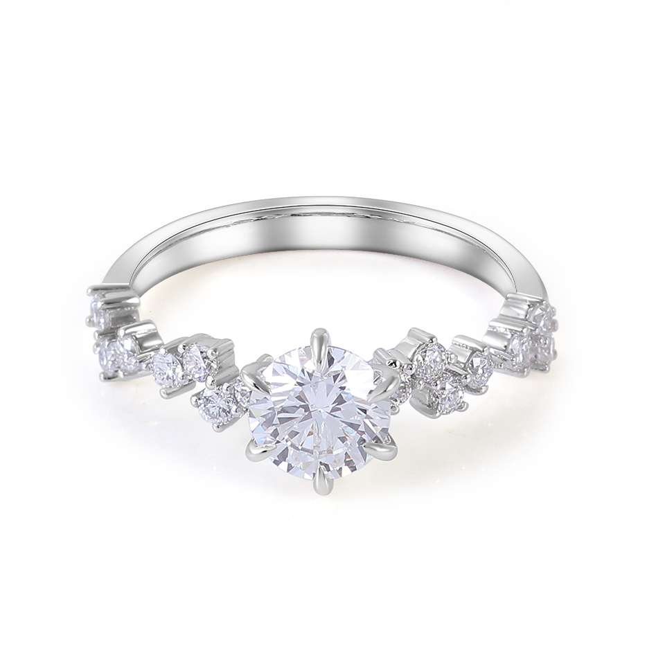 Gorgeous White Gold Round Cut Moissanite Accent Ring