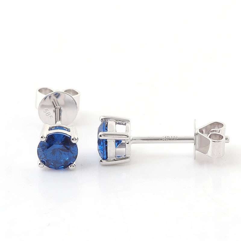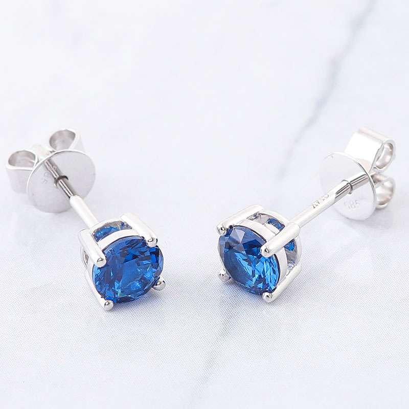 Elevate your jewelry collection with these Gorgeous White Gold Stud Earrings. Each earring features a brilliant round cut royal blue lab gemstone, exuding a deep and captivating hue that’s both elegant and striking. The gemstone is securely held in a white gold setting, which not only complements the rich color of the stone but also adds a touch of luxury. These earrings are perfect for any occasion, whether it’s a casual day out or a formal event. Their simple yet sophisticated design makes them a versatile accessory that can effortlessly enhance any outfit, adding a pop of color and a hint of glamour.