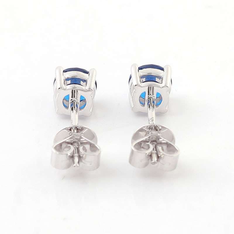 Gorgeous White Gold Round Cut Royal Blue Lab Gemstone Stud Earrings