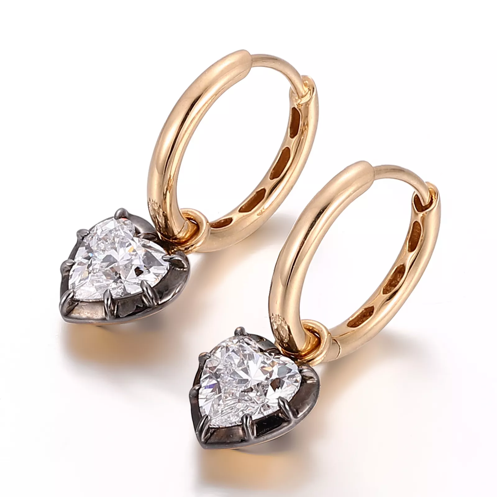 Heartbeat Studs | Heart-Cut Lab Diamond Earrings in 18K Yellow Gold with Contrast Black Prongs