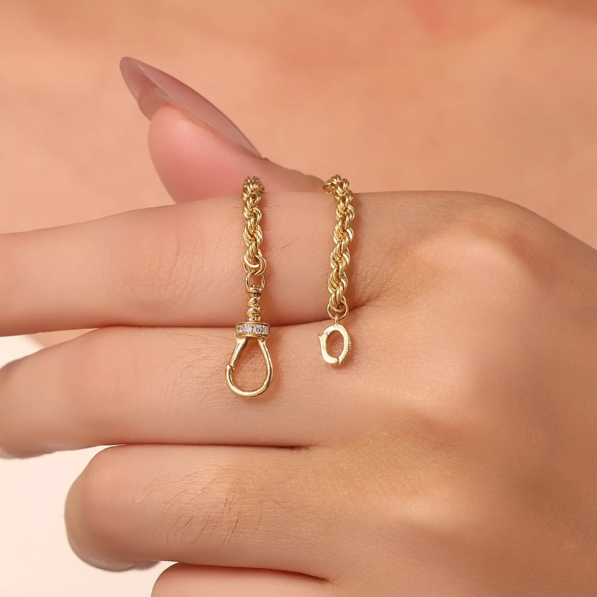 Helix Gold Essence Necklace | 18K Yellow Gold Rope Chain with Lab Diamond Accent Clasp