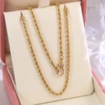 Helix Gold Essence Necklace crafts a contoured rope chain in 18K yellow gold, featuring deep helical grooves that create dynamic light interplay. The design centers on an engineered clasp with pavé-set lab diamonds micro-beaded along its curved frame — icy scintillation contrasting against warm metal luster. The lobster clasp integrates lab diamond pavé accent, refracting icy sparks against the gold’s luster. Understated. Refined. Always chic.