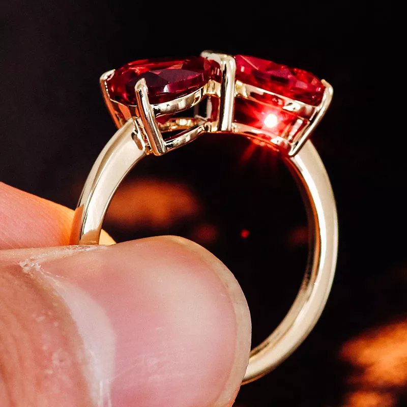 Jedi Red Heart Ring | 18K Yellow Gold Lab Ruby Duo-Heart Ring