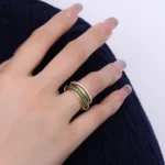 Stacked Eternity Rings unite three essential designs: Lab emerald botanical eternity, Complementary solid band, and Moissanite ice eternity for layered brilliance. Each band alternates between minimalist metal and pavé gems – lush green lab emeralds contrast icy moissanite scintillation. The seamless rose gold palette ensures cohesive stacking, transforming ethical luxury into a customizable symphony of light and texture.