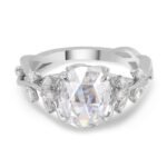 This exquisite Leaf Halo Oval Moissanite Engagement Ring showcases a brilliant 8x10mm oval-cut center stone surrounded by artfully arranged marquise moissanites, mimicking budding floral vines. Crafted with meticulous attention to detail, 16 smaller stones (1.5x3mm) cascade like natural foliage around the center stone, creating dimensional brilliance under any light.