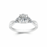 One of our favourite styles when it comes to moissanite engagement rings is leaf or nature inspired rings. As a matter of fact we have created a number of leaf rings which our clients love. This design features a single 1ct round moissanite in the centre, set between 4 striking leaf patterns on either side, each with their own diamond for added sparkle.