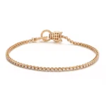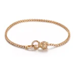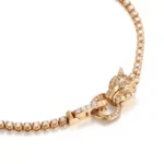 The Leopard Majesty Bracelet embodies wild elegance—a 18K yellow gold panther head clasp with two brilliant lab-grown diamonds as piercing eyes, accented by set round lab diamonds along the facial contours. The textured curb chain links mimic muscular definition, each adorned with a lab diamond, blending fierce allure with refined luxury.