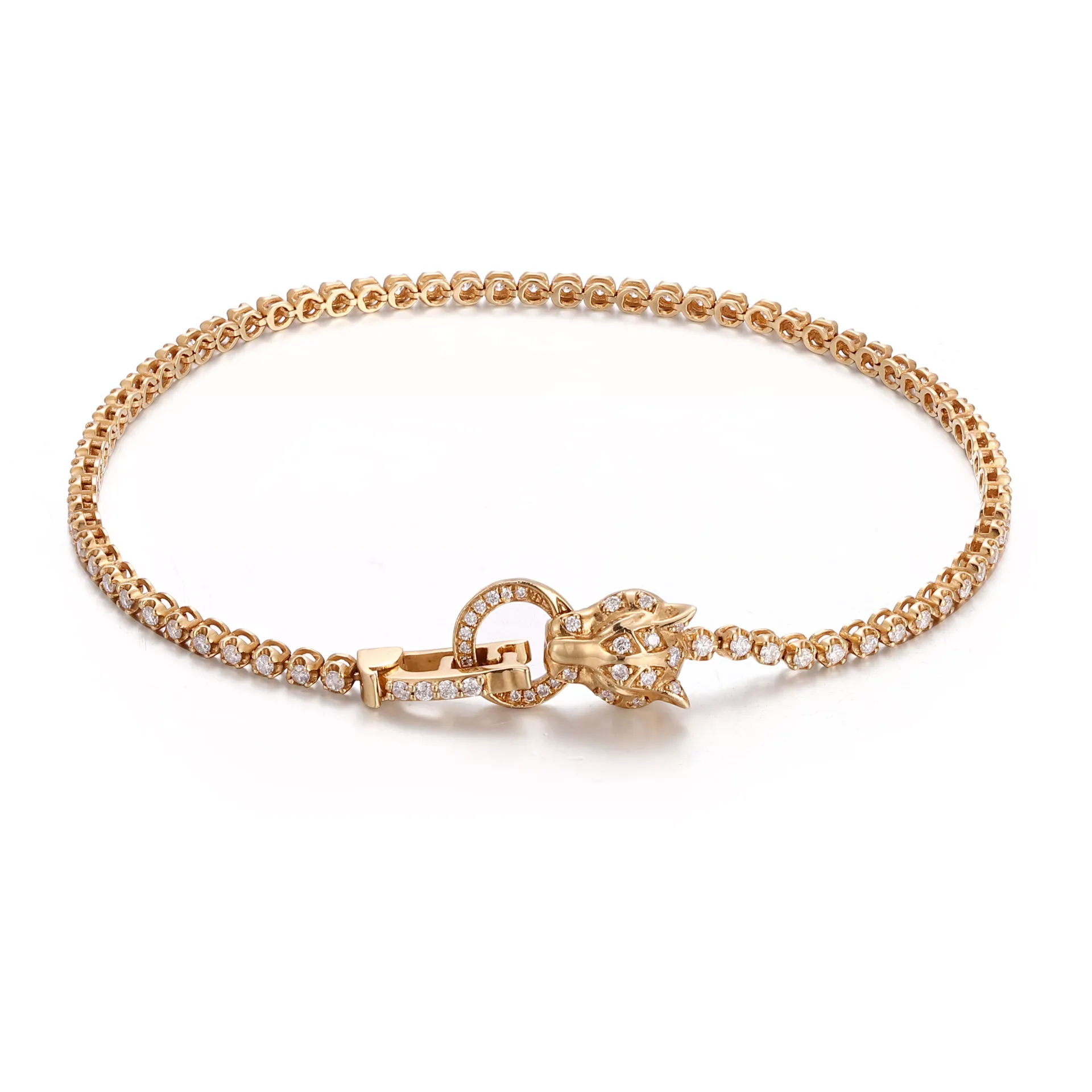 Leopard Majesty Bracelet | 18K Yellow Gold Lab Diamond Panther Head Clasp Bracelet