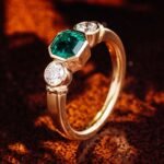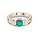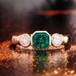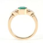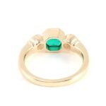 Experience unparalleled elegance with our Exquisite Yellow Gold Asscher Cut Lab Gemstone Three Ring. At its core lies a lab grown gemstone, masterfully cut in the Asscher style, celebrated for its geometric precision and exceptional clarity. The lush green of the gemstone commands attention, standing out against the warm glow of the yellow gold band.