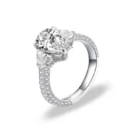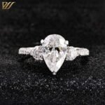 This enchanting engagement Three Ring is a masterpiece crafted in premium white gold. At its heart lies a dazzling moissanite of VVS clarity, cut into an elegant pear shape that catches and reflects light in the most mesmerizing way. The central pear cut moissanite is beautifully complemented by smaller moissanite stones that adorn the band, adding extra sparkle and sophistication. Ideal for those seeking a symbol of eternal love that combines luxury and brilliance, this ring is perfect for proposals or as a cherished keepsake. Its timeless design ensures it will be a treasured piece for generations to come.