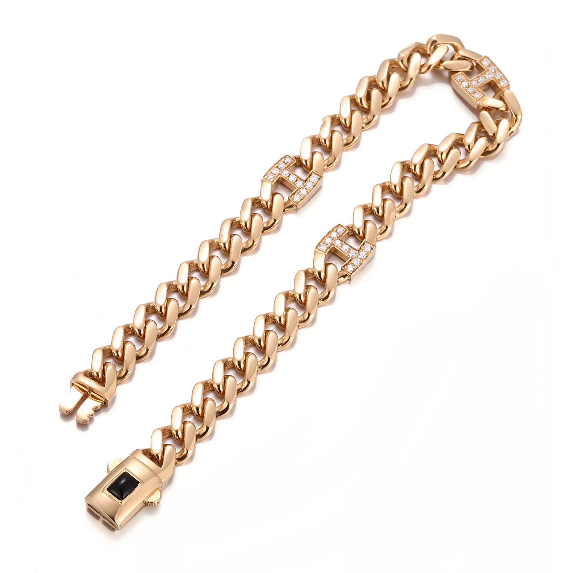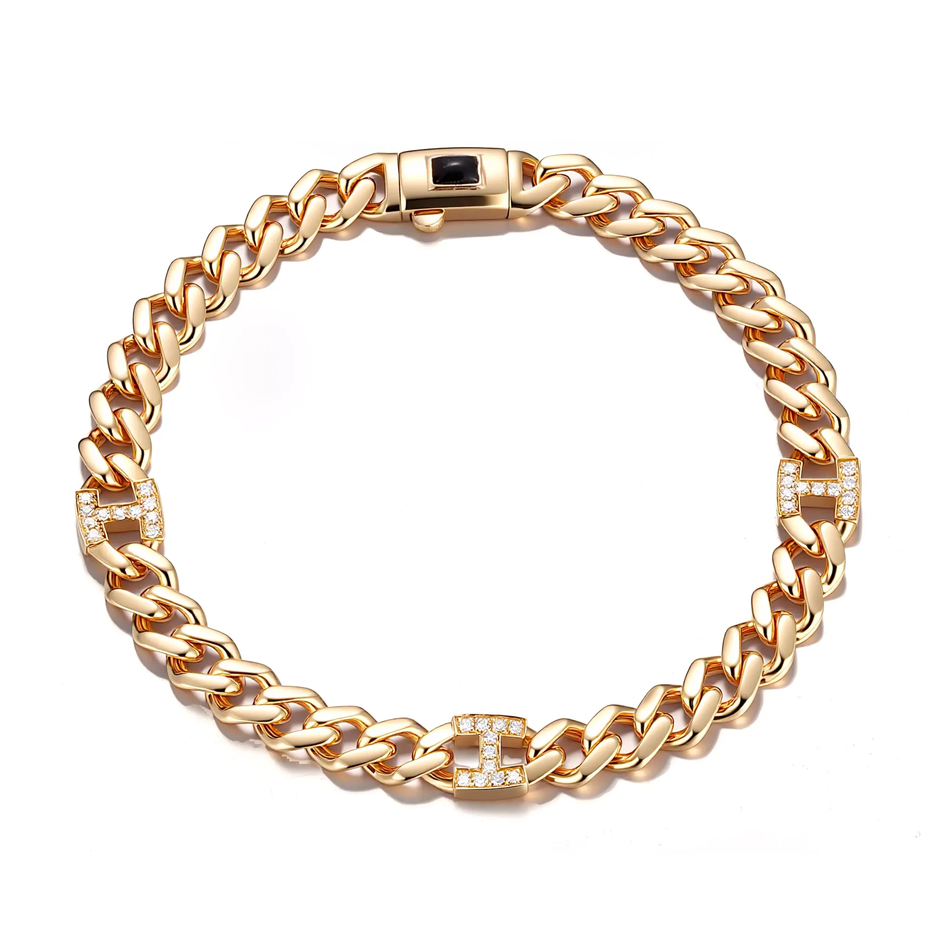 Monaco Lab Diamond Link H-Bracelet | 18K Yellow Gold Lab Diamond Chain with Pave Links