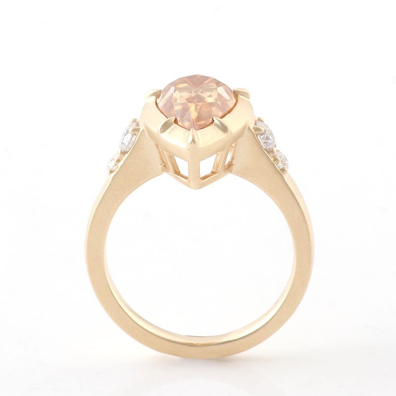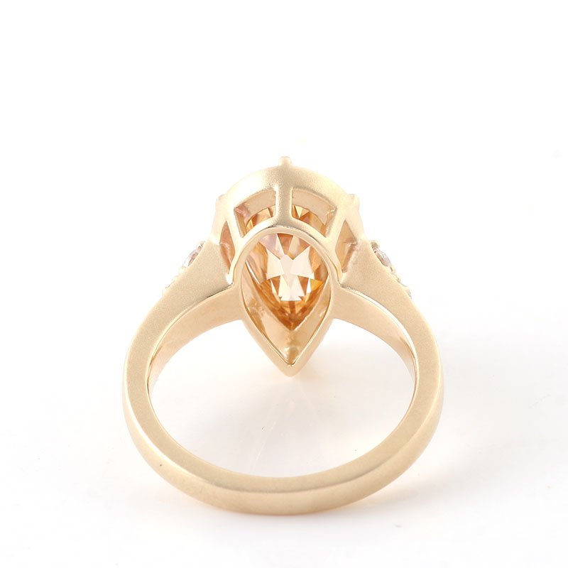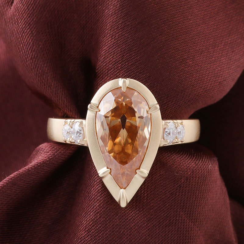 OEC Pear Champagne Cut Moissanite Bezel Setting Dress Ring