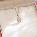 The Oval Diamond Pendant centers a precise oval-cut lab diamond fully embraced by an 18K yellow gold bezel setting, creating a fusion of metal and diamond. The diamond’s facets refract soft, continuous light waves. The design focusing purely on the contrast between the diamond’s ice-white scintillation and the gold’s warm luminosity. Ideal for daily elegance, this piece embodies ethical luxury through conflict-free materials and timeless artistry.