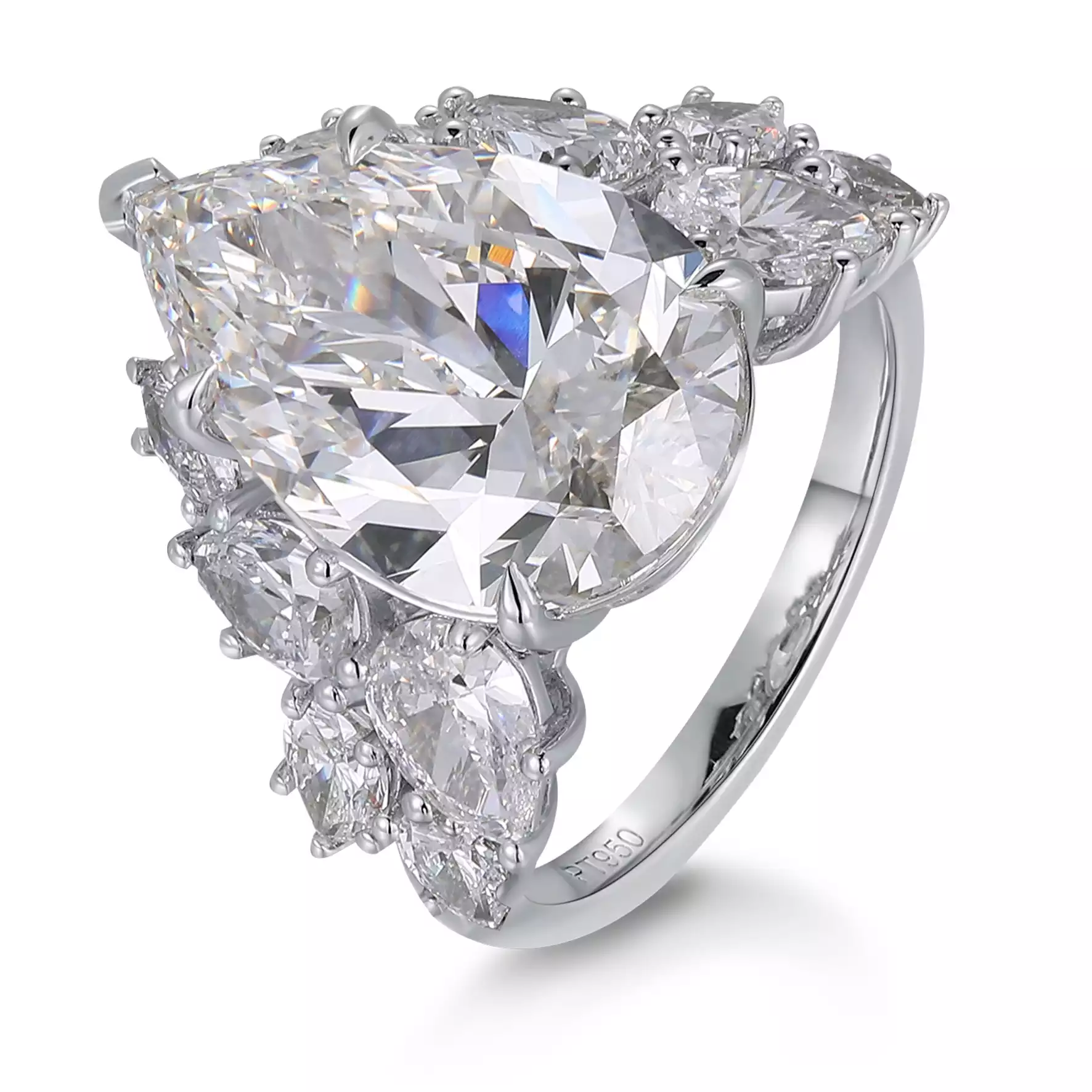 Side Stone:4.5*6.5MM*4pcs pear cut DEF/VVS moissanite;3.5*5MM*2pcs pear cut DEF/VVS moissanite;3*4MM*2pcs pear cut DEF/VVS moissanite;2.5*5MM*2pcs marquise cut DEF/VVS moissanite