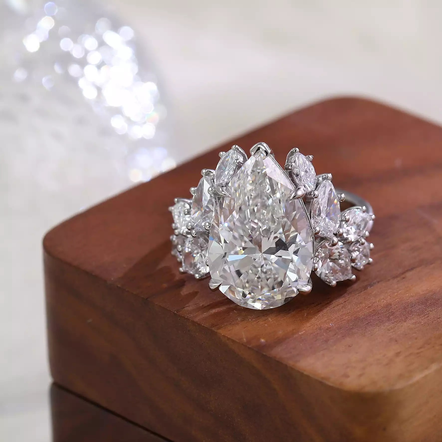 Pear-Shaped Cluster Engagement Ring with Surrounding Moissanite
