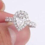 - Main Stone: Pear cut DEF/VVS moissanite (9x6mm)