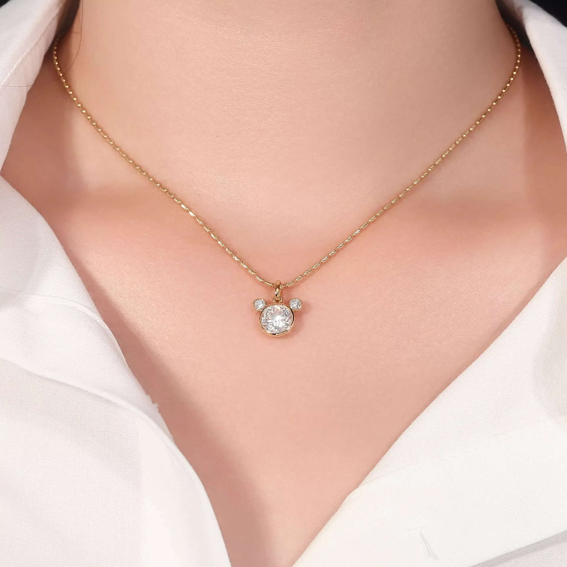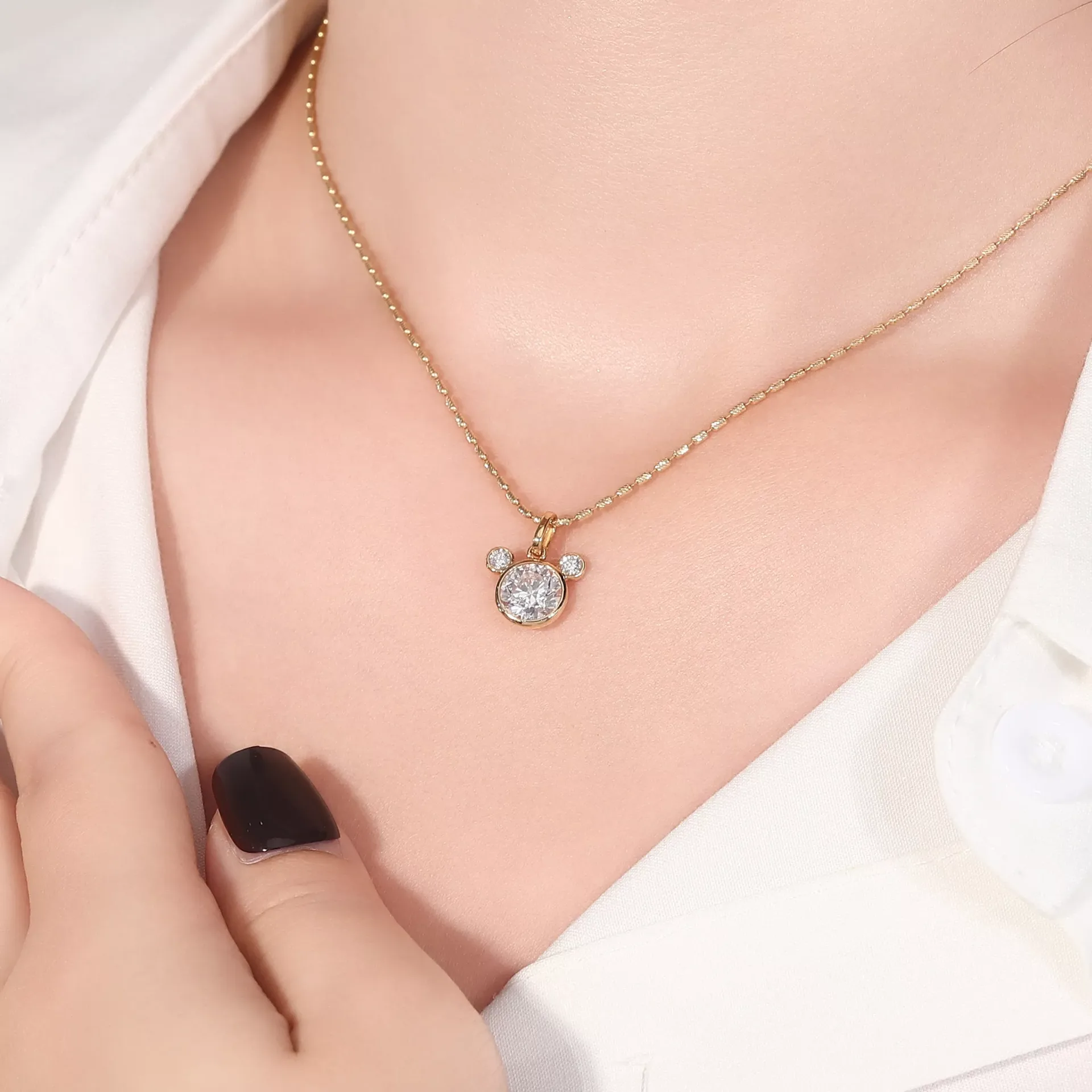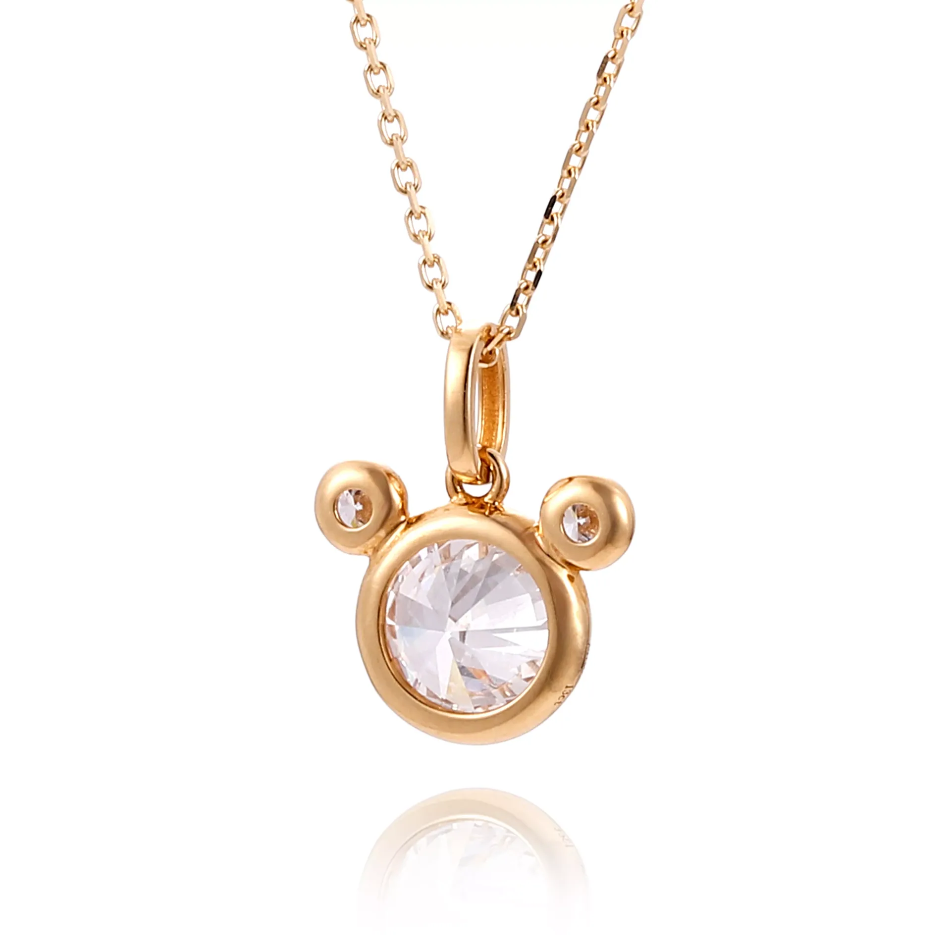 Add a touch of whimsical nostalgia to your look with this playful mouse silhouette lab diamond pendant. Crafted for the young at heart in lustrous 18k yellow gold, it features three brilliant round-cut lab diamonds. Each stone is secured in a sleek bezel setting, forming the iconic and instantly recognizable silhouette of a beloved classic mouse. This charming design is a perfect way to celebrate joy, making it a delightful and ethical gift for any fan. Ready to personalize your favorite chain. Please note: This is the pendant only; chain sold separately.