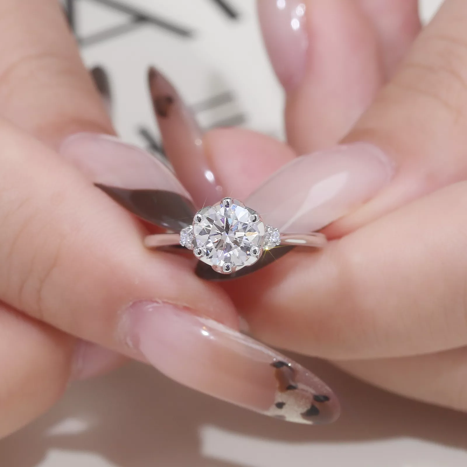 Primal Lumina Ring | Central Dominant Round Moissanite Ring with Scattered Celestial Moissanite Accents