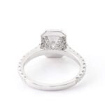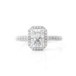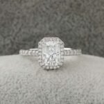 This captivating radiant cut halo engagement ring is a dazzling symphony of light and love, designed to ignite eternal brilliance on your finger. Prepare to be mesmerized by the play of fire and sparkle that reflects the boundless intensity of your commitment.