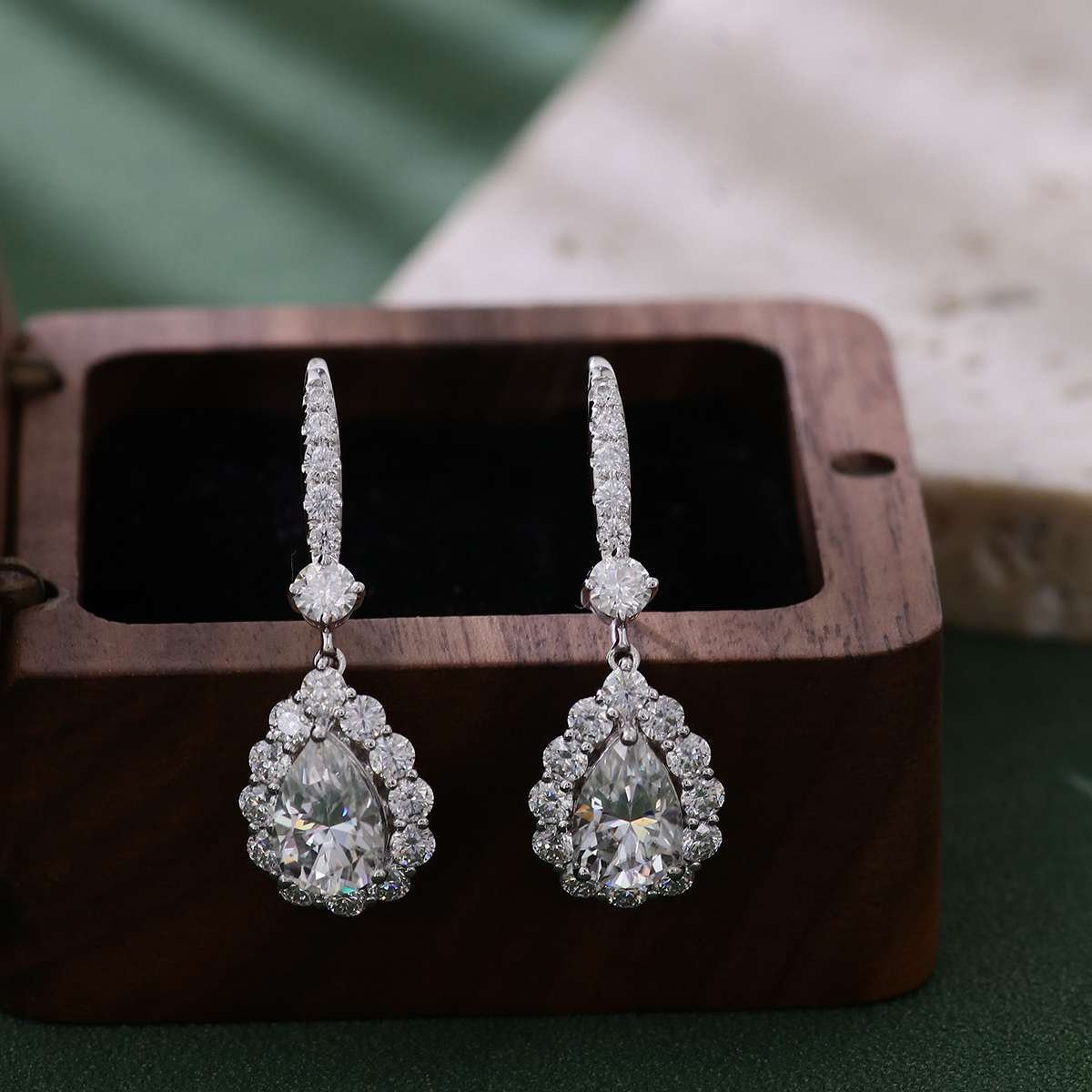 Home » Jewelry » Radiant Pear Cut Moissanite Drop Earrings