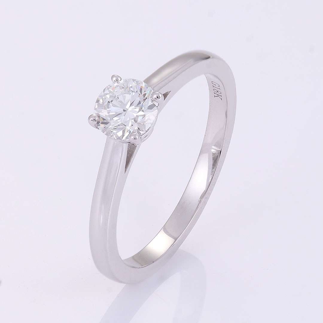 Radiant White Gold Moissanite Round Cut Solitaire Ring