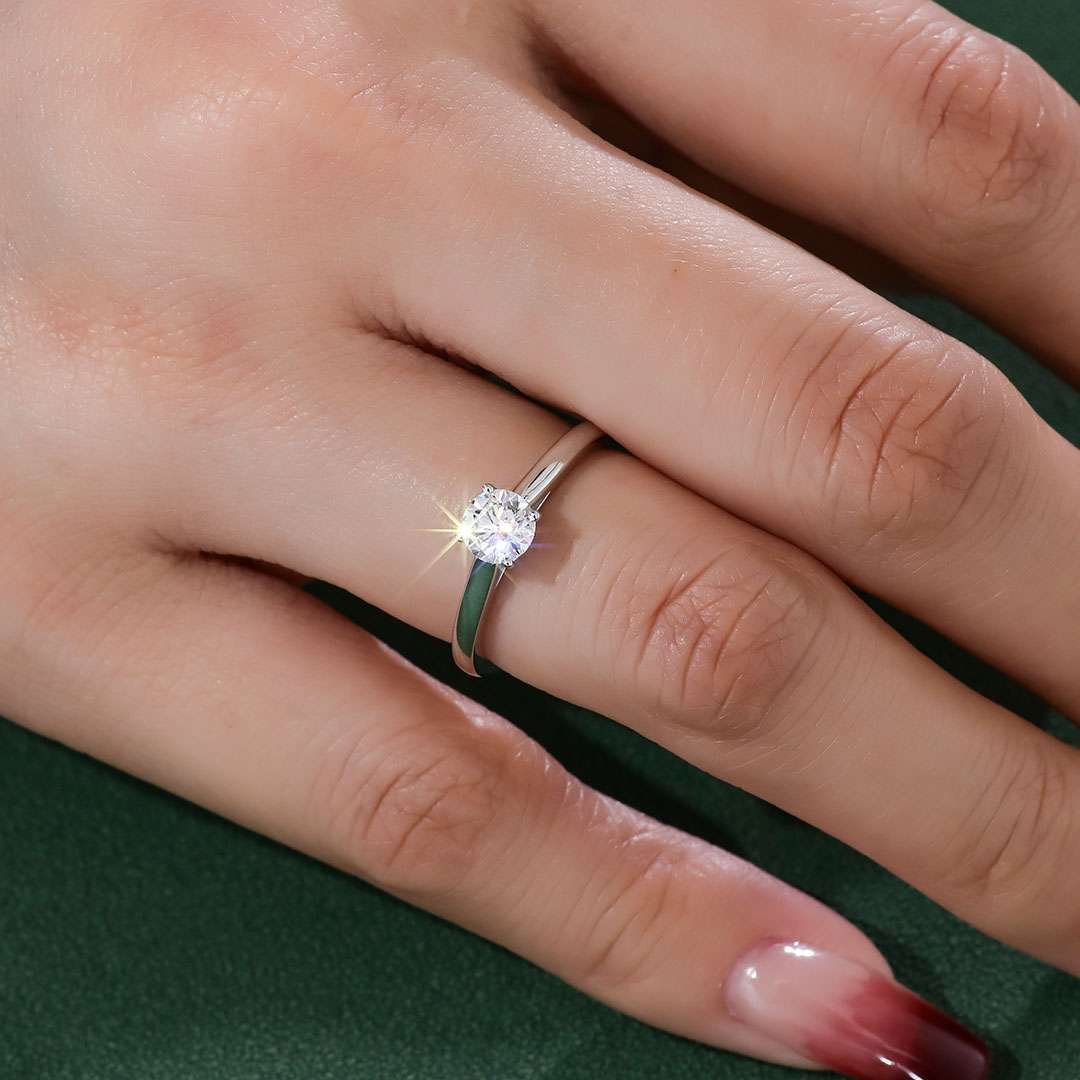 This White Gold Moissanite Round Cut Solitaire Ring is a timeless emblem of elegance and grace. The central moissanite stone, boasting VVS clarity and a classic round cut, is the epitome of brilliance, capturing and reflecting light with dazzling effect. Nestled securely in a prong setting atop the smooth white gold band, it stands out as a symbol of refined beauty. Crafted with meticulous attention to detail from high quality white gold, this ring offers a perfect blend of modern simplicity and luxurious allure. It’s an ideal choice for engagements, special gifts, or as a statement piece for any occasion, promising to be cherished for a lifetime.