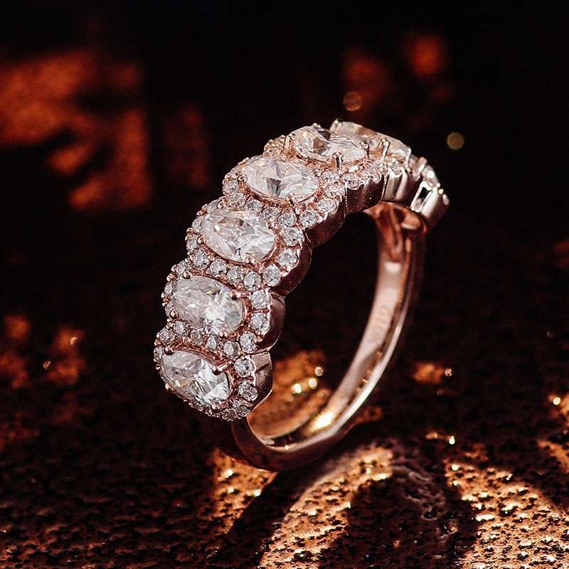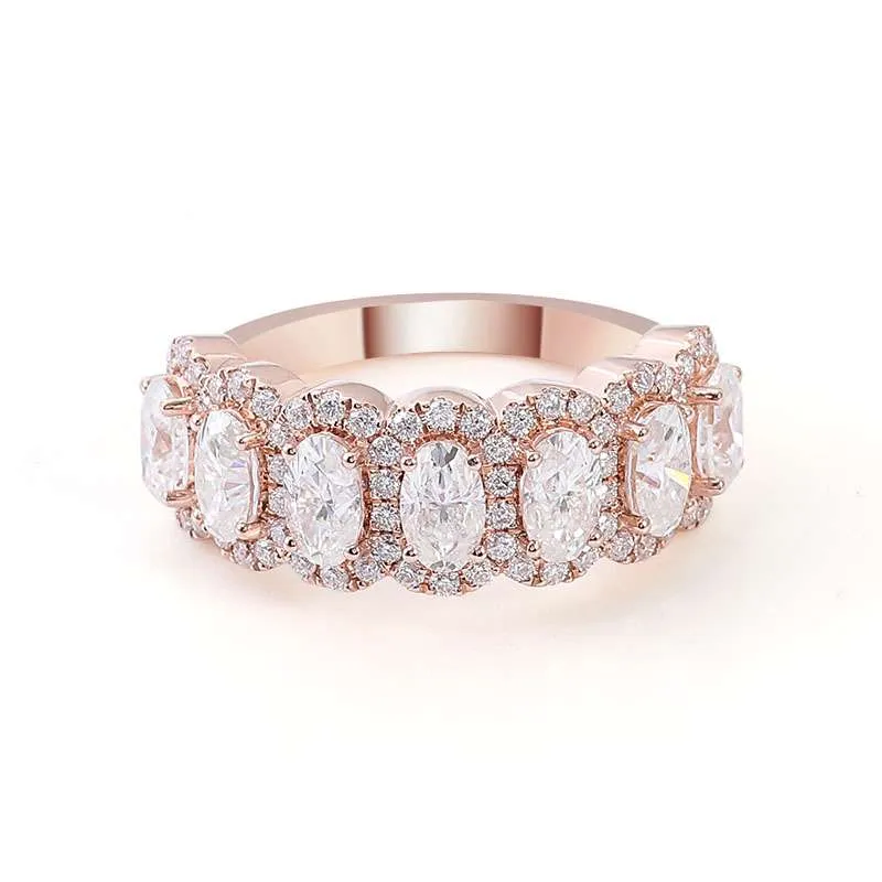 Radiate Luxury:Exquisite Rose Gold Moissanite 2.1CTW Oval Cut Ring
