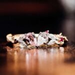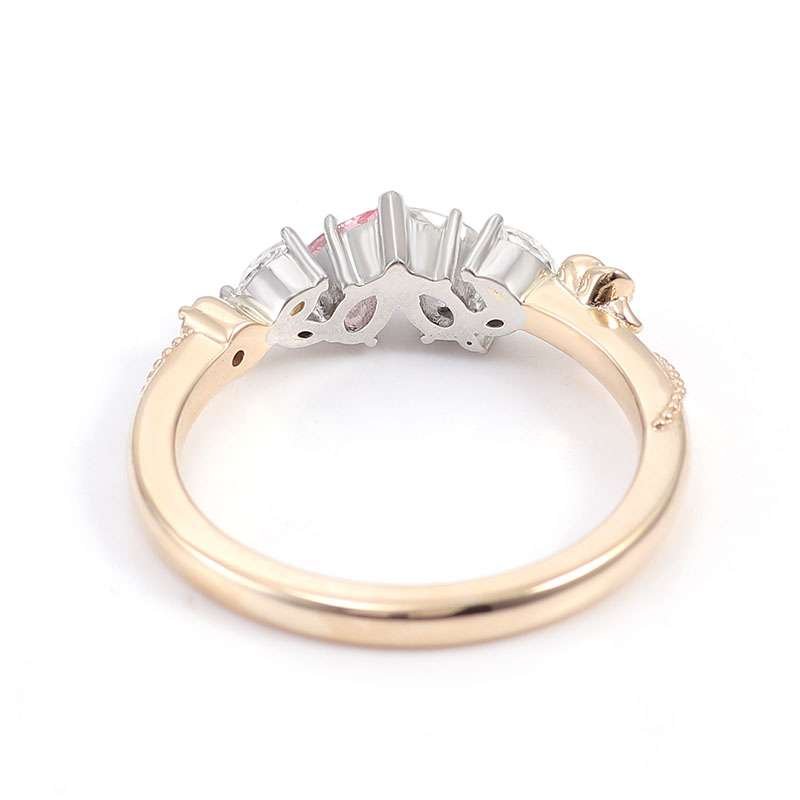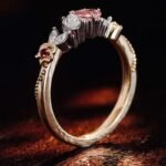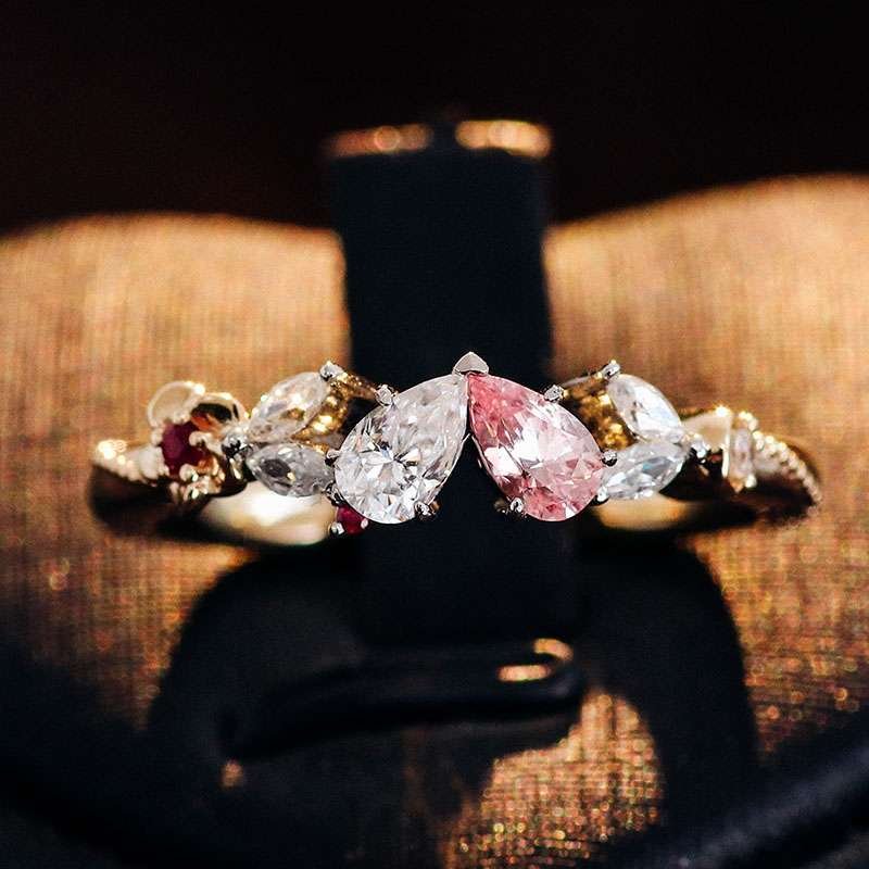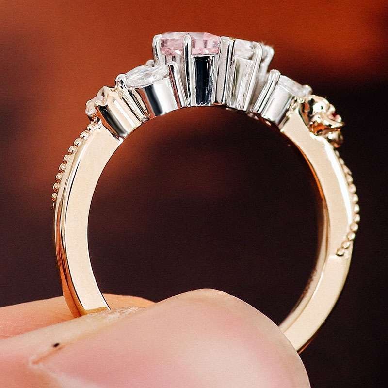 Romantic and Unique:Yellow Gold Moissanite and Lab Gemstone Ring